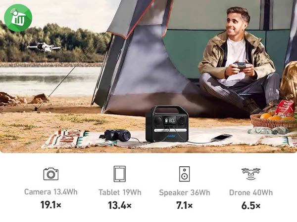 Hit the road and relax without worrying about power shortages all weekend long. Anker 522 Portable Power Station boasts a large 320Wh capacity for your needs.