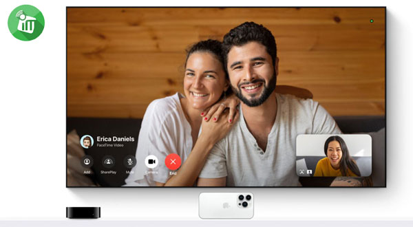 on Apple TV 4K seamlessly connects to your iPhone or iPad to deliver your audio and video to the big screen through Continuity Camera.7 So sharing special moments together with friends is easier, bigger, and better than ever