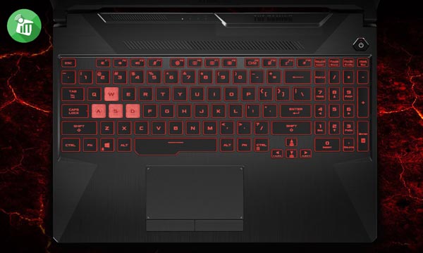 For Instance, ASUS TUF Gaming A15 Arm yourself with a desktop-style keyboard optimized for gaming. Uniform RGB backlighting lets you express your own unique style, while highlighted WASD accents give you a visual shortcut to key movement commands. in addition, Overstroke technology triggers higher in each keystroke for faster responsiveness and effortless control. In true TUF form, each key is durable enough to withstand over 20 million presses for superb long-term reliability and precision.