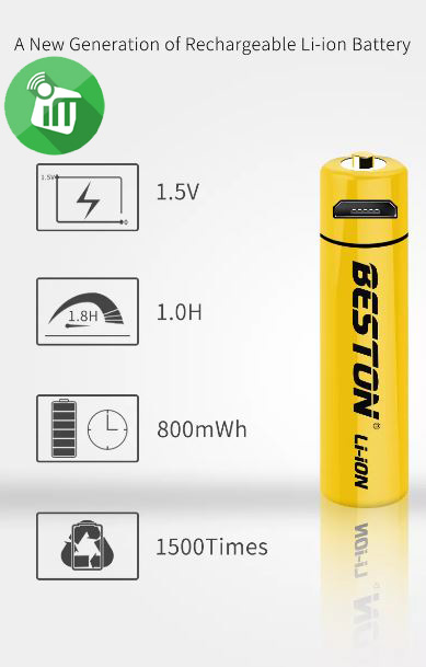 Beston 2PCS AAA Micro USB 1.5V Rechargeable Lithium Battery 800mAh