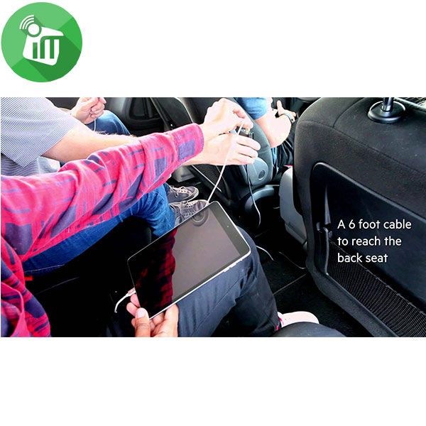 The 6ft cable allows for backseat passengers to easily access the charger.