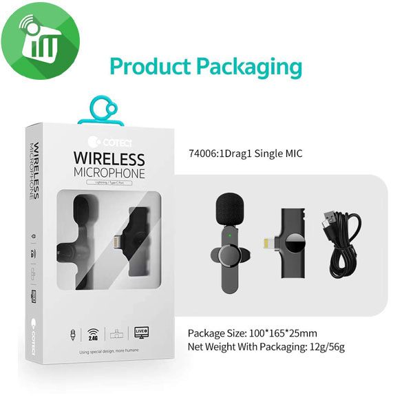 COTEetCI 74006 Lightning Wireless Microphone (1 Drag 1 Single Mic)