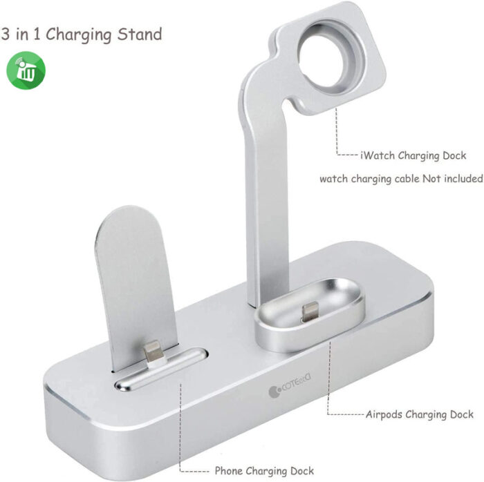 - It is convenient to charge your apple watch (all series) , Phone, and AirPods/AirPods Pro at the same time in one place with this dock- sturdy, neatly, and organized; The aluminum watch charging stand looks good and elegant