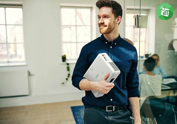 Here’s a projector that’s designed with portability and quick set up in mind. Its compact design makes it easy to move from room to room, and you can quickly position the image with keystone correction and access content simply with the HDMI input.