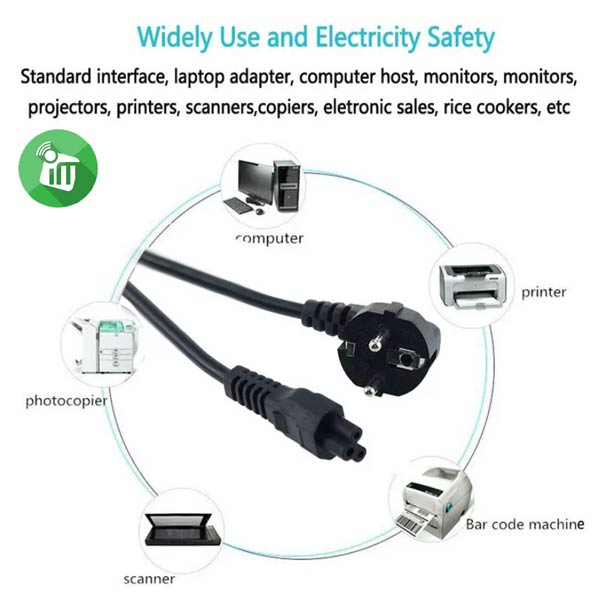 in addition, EU Schuko IEC 1.5mm TWorks with Laptop Chargers, Satellite Equipment, and most other power supplies and Printers Works with most PCs, monitors, printers, scanners and other devices that utilize a 3 prong AC power cord Equality Thickness of Insulation, Preventing leakage and breakdown, Ensure safe use of electricity. Heavy duty cord features a fully molded design for maximum durability and long life. The female IEC connector plugs directly into the device while the male IEC connector plugs into a standard outlet.