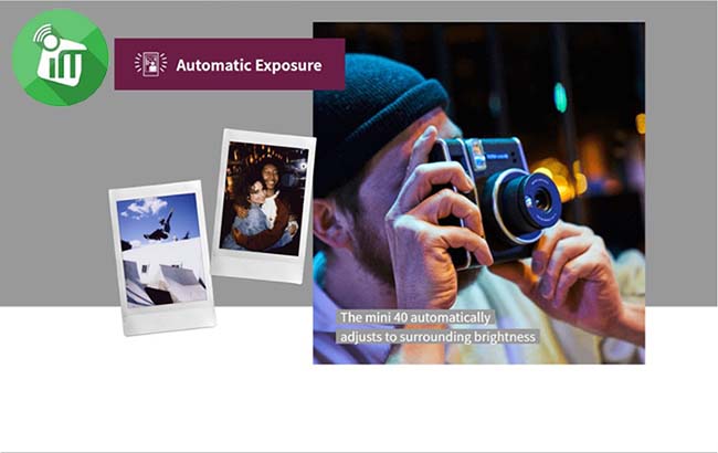 The instax mini 40 instant camera automatically adjusts the exposure settings in every situation, in order to capture every subject as authentically as possible.