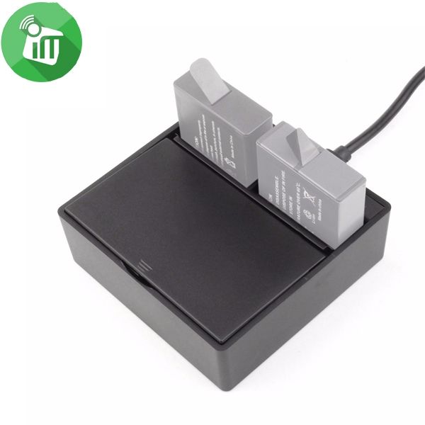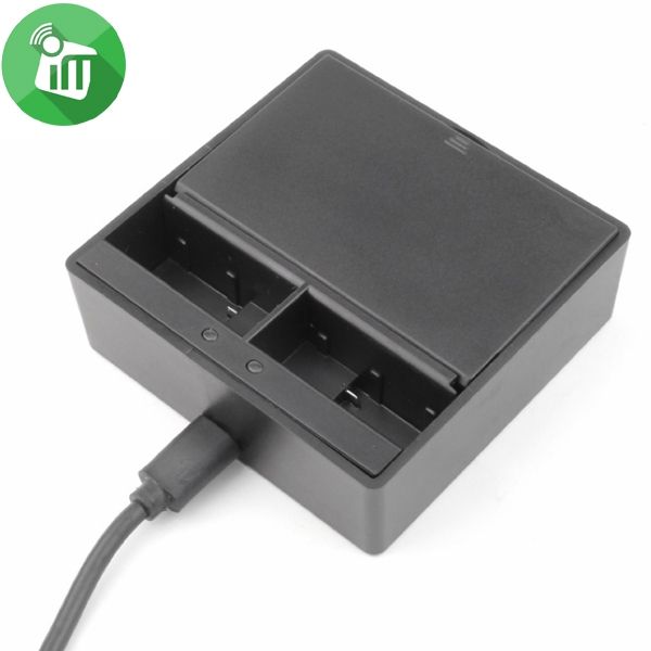 The dual charger for the GoPro action camera allows you to simultaneously charge two rechargeable batteries. The device has a convenient, lockable storage compartment
