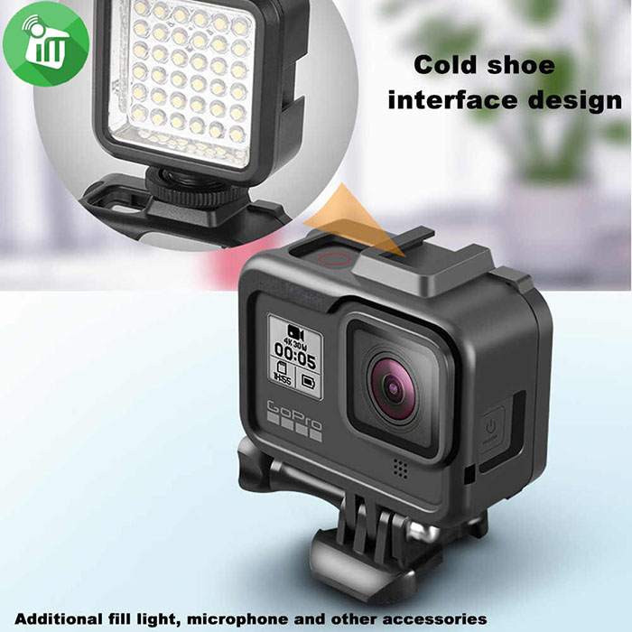 the top of the for goprohero 8 action frame has hotshoe design, it can be easy to use with fill light or microphone