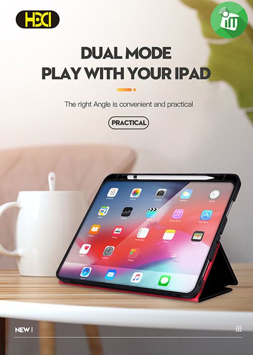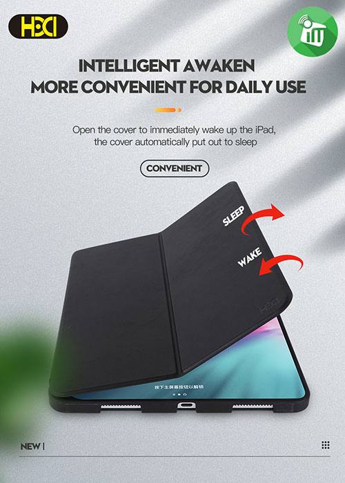 The right middle of smart case for iPad can be turned over and alternate Both sides are capable of waking up the ipad or putting your iPad in sleep mode. design approves a more flexible and multi-angle way to stand your device, which is convenient to watch movies and use with keyboard