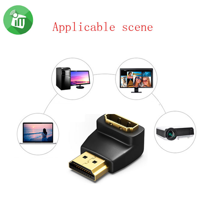 - HDTV male – female right angle adapter, can effectively protect the HDMI-compatible cable connector, suitable for HDTV cable connection with 90 degrees turn as required. Used in Wall TV, wiring, etc.