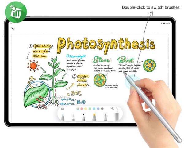 Designed to make HUAWEI M-Pencil an even more convenient tool. You can switch between For instance, brush and eraser simply by tapping your finger on the sensing area of HUAWEI M-Pencil twice.