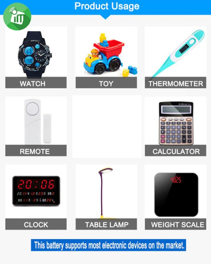 Wireless Doorbell, Digital Cameras, Remotes, games controllers, clocks, toys Watches, Cameras, Computers, PDAs, Calculators, Camcorders, Remote Controls, Laser Pointers, Electronic Instruments, Electronic Games, MP3 Players, Blood Glucose Testers, Digital Voice Recorders, Cholesterol Testing Meters And Other Electronic Products.