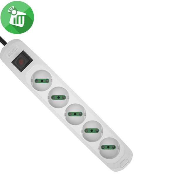 iLock Power Strip Equipped with 3 eyes for use with triple and double plugs,. A safety fuse cuts off the electricity if the current exceeds 16 amps (to restart, press the button in)