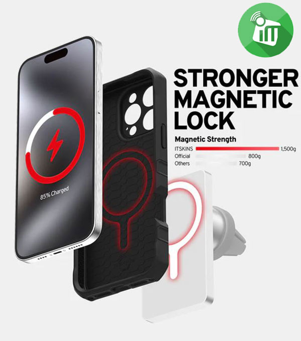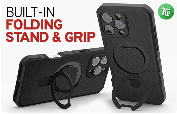 is the ultimate case with numerous advanced features. It is loaded with extra strong magnets embedded around a folding MagSafe-compatible stand to hold to any metal surfaces. Enhanced with AI technology, it offers superior impact absorption around the interior perimeter, protecting your device from drops up to 4.5M / 15 Feet.