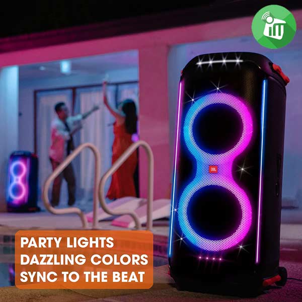 Transform any space into a rock concert, nightclub, and karaoke lounge all rolled into one. Sync your music to dynamic, customizable strobes, a unique starry night effect, and next level flashing club patterns easily controlled via the streamlined, user-friendly top panel dials or PartyBox app.