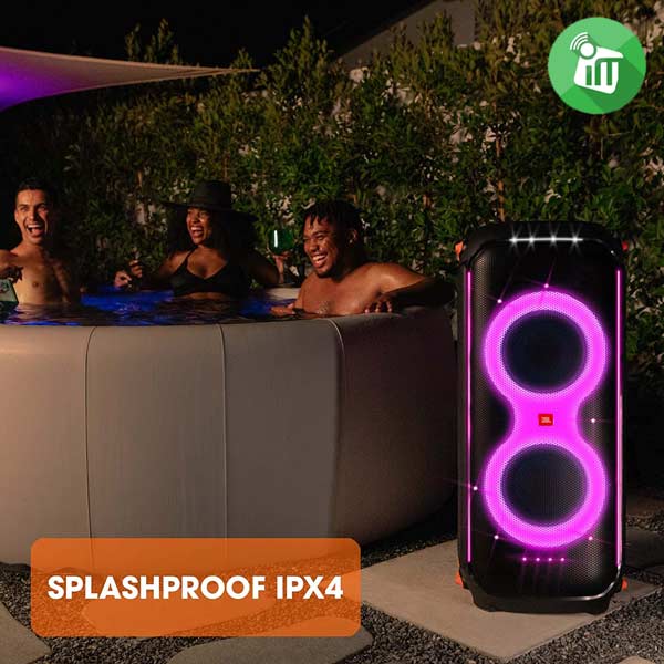 Whether you are partying with friends in your backyard or sipping drinks by the pool, the JBL PartyBox 710 is IPX4 splashproof so you never have to worry about the party getting too wet and wild.