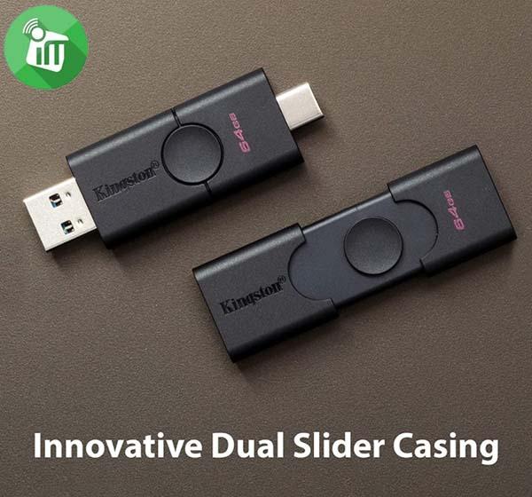 The innovative dual slider casing makes the drive sturdy, stylish, with no cap to lose. DataTraveler® Duo is an ideal extra storage for your laptops, desktops and mobile devices.