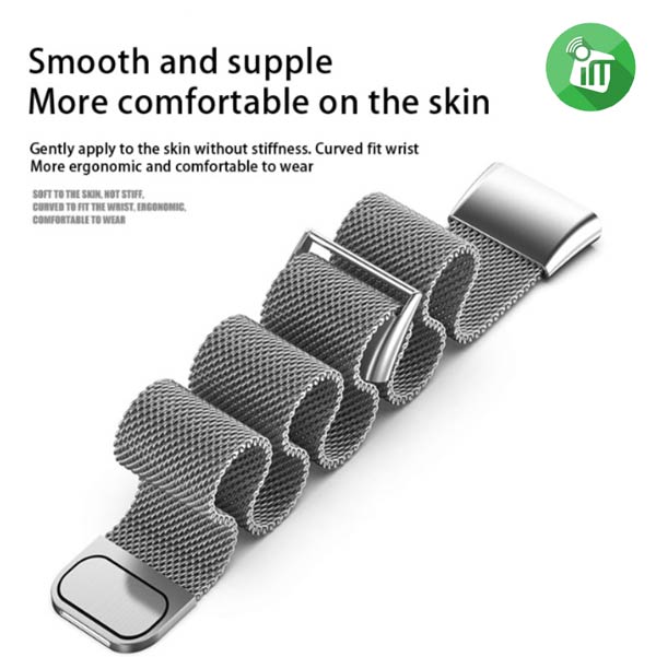 Milanese mesh loop design, The strap is thickened, comfortable to wear and easy to use The material is not harmful to human skin and is not allergic Sturdy buckle design, ensure your watch in steady and secure, and effectively prevent falling Nice replacement watch strap to repair or renew your smart watch, perfect fit ventilate comfortable