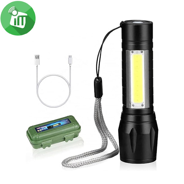High-quality aluminum alloy material, durable Built-in 500mAh battery charging by USB cable ( USB cable included )XPE + COB. LIGHT Water resistance Stalls: Strong Flash Strong Sidelights Lamp Beads: XPE – COB Charging Method: USB Focus Mode: Telescopic Irradiation Distance: 100-200 meters Package inclusions:1 x flashlight1 x usb cord1 x flashlight box Product weight: 55 gm