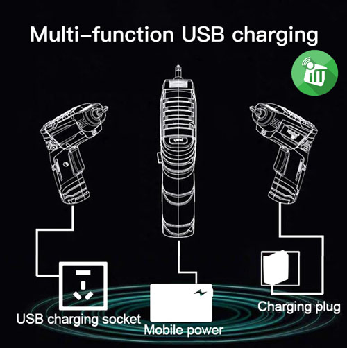 - In addition, USB interface supports multiple charging methods such as power bank, car charger, etc