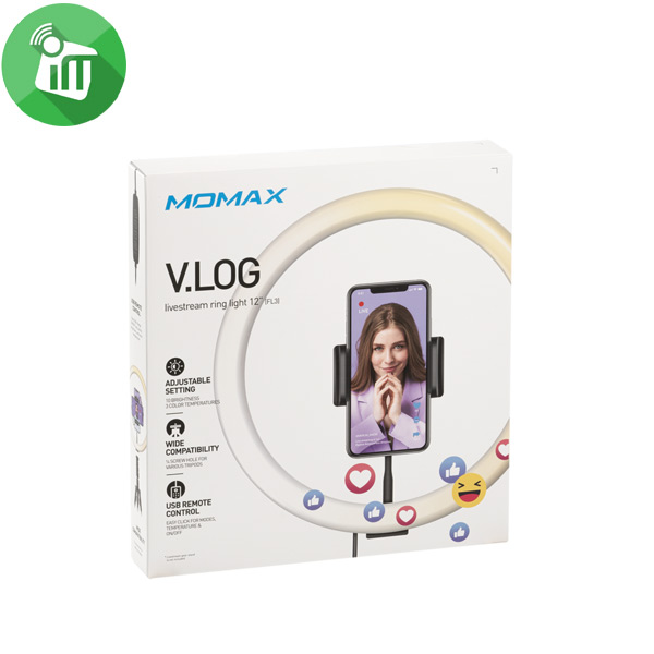 10 Brightiness | 3 Color Temperatures – ( Momax V. Log Livestream Gear Stand (TR9) Sold Separately )