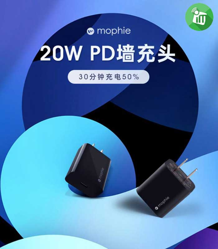Mophie Power Delivery 20W fast charger is designed with 4 beautiful rounded corners, firmly held in hand, compact size, ultra-light making it easy to carry with you. Compared to Apple’s 20W fast charger, the Mophie charger is somewhat more compact and lighter.