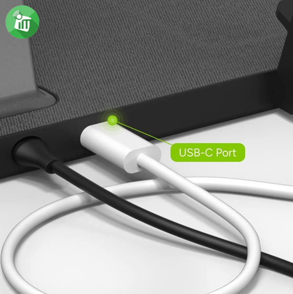 The external plastic of the charging stand is made with 30% post-consumer recycled plastic. The weighted steel base ensures the charging stand is stable and secure.