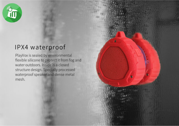 IPX4 waterproof PlayVox is sealed by environmental flexible silicone to protect it from fog and water outdoors.
