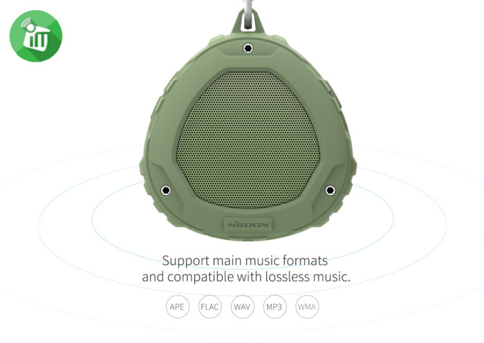 Inside is a closed structure design. Specially processed waterproof speaker and dense metal mesh.