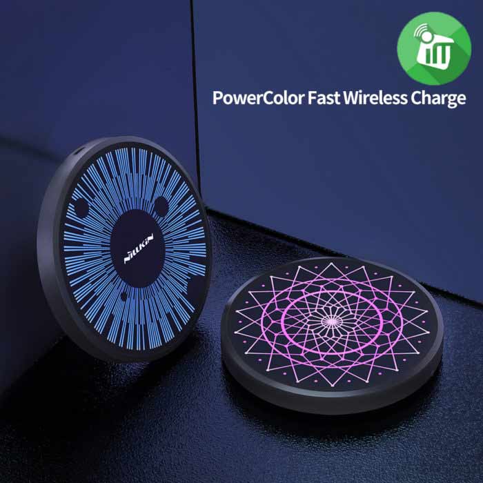 The Nillkin PowerColor fast Qi wireless charger features a unique and stylish pattern with tridimensional texture design blended perfectly with colorful light. In addition to its elegant design, it supports up to 15 W fast charging while also supporting other charging modes such as 10W, 7.5W, and 5W