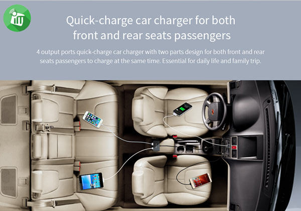 - Quick car charge for both front & rear seat passengers as there are 4 ports in a single charger