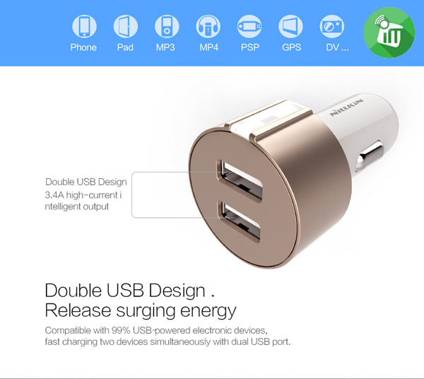Exquisite look and powerful core.Dazzling metallic. Luxury and bright. Harmonious blending with accessories in the car. Create simple fashion business atmosphere.Advanced intelligent power management chip, Automatic charge control, Constant Current, Stable performance