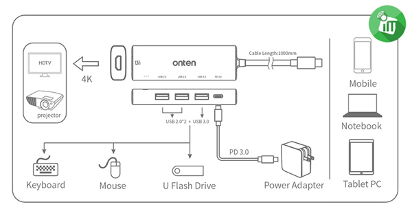 in addition, Onten OTN-UC123 Type-C build-in smart chips – protection systems to avoid over-current, over-voltage, short circuit and high-temperature for security and excellent performance. For instance, Exquisite ultra-slim design, our usb-c adapter hub is compact and lightweight without taking up too much space Type-C Multifunctional Dock can expand laptop to USB peripheral devices and display devices.