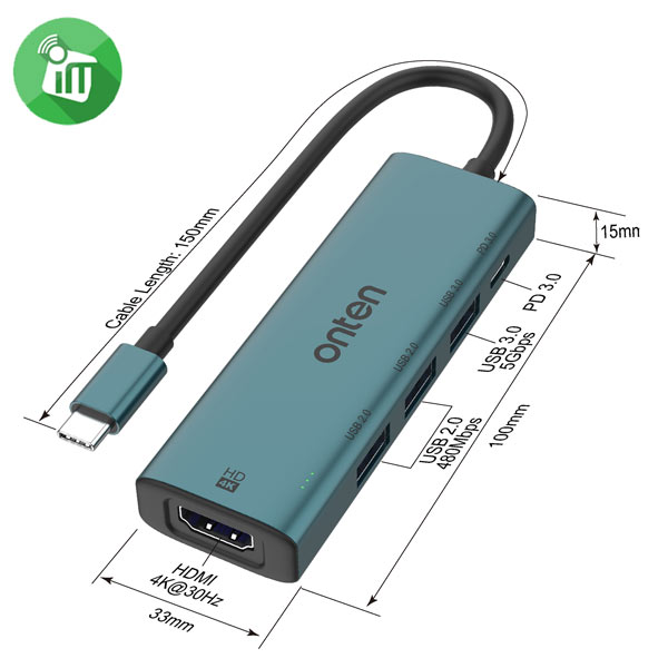 Onten 5 in 1 USB-C to HDMI 4K USB Hub (OTN-UC123)