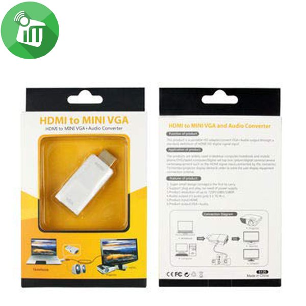 This HDMI to VGA AV adapter integrades video and audio output from a portable device, such as a laptop, smartphone or tablet PC. Audio and video signals can be output simultaneously from this adapter without any additional device. In addition, with the built-in audio decoder