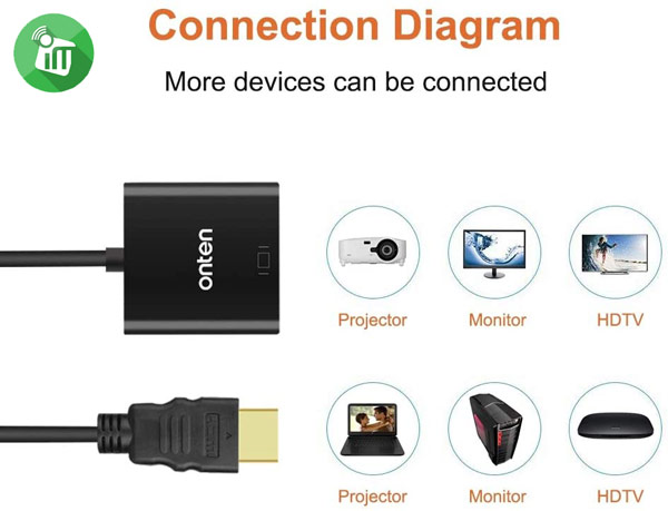 For instance, Onten 5165 VGA HDMI source is compatible with all desktop/notebook/TV stick/raspberry Pi/tablet PC/digital set-top box/digital Camera/SLR camera/video Camera that have HDMI port; VGA source is compatible Similarly, with all TV/monitor/project/LCD/TV and other displays that For instance, equipped with VGA port. It’s After that, single way, not bi-directional, only transfer HDMI digital signal to analog VGA