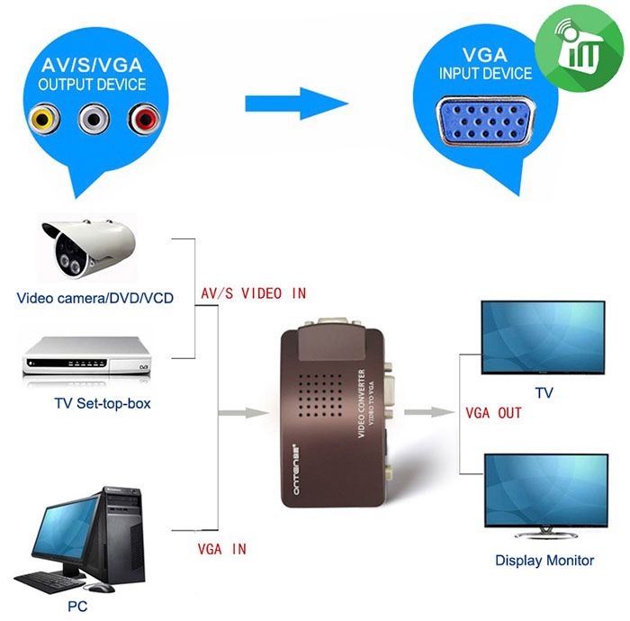 - AV to VGA Converter Set-Top Box S-Video Video Turn Computer Monitor to Watch TV Converter Box