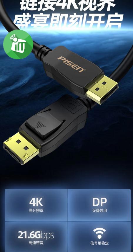 in addition, Pisen HD11 DisplayPort 1.2m Gold-plated connectors, tinned copper conductors, and foil & braid shielding combine together to provide both superior cable performance and reliable connectivity. for instance, Gold-plated connectors provide durability, and improve the signal transmission. for instance, Foil & braid shielding reduces Electromagnetic interference; Tinned copper conductor enhances cable performance