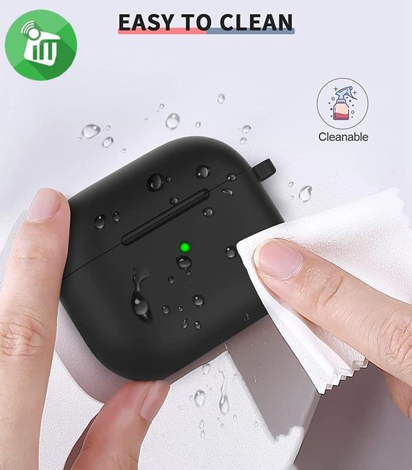 Pocket Cover AirPods 3 Made of flexible, impact-resistant silicone material with dustproof, smooth surface and easy to clean easy to use. You can easily open or close the lid manually. It can well protect your device from scratches, bumps, dust and damages has a cutout that allows you to charge the headset without removing the cover
