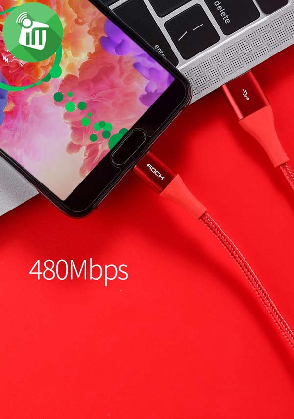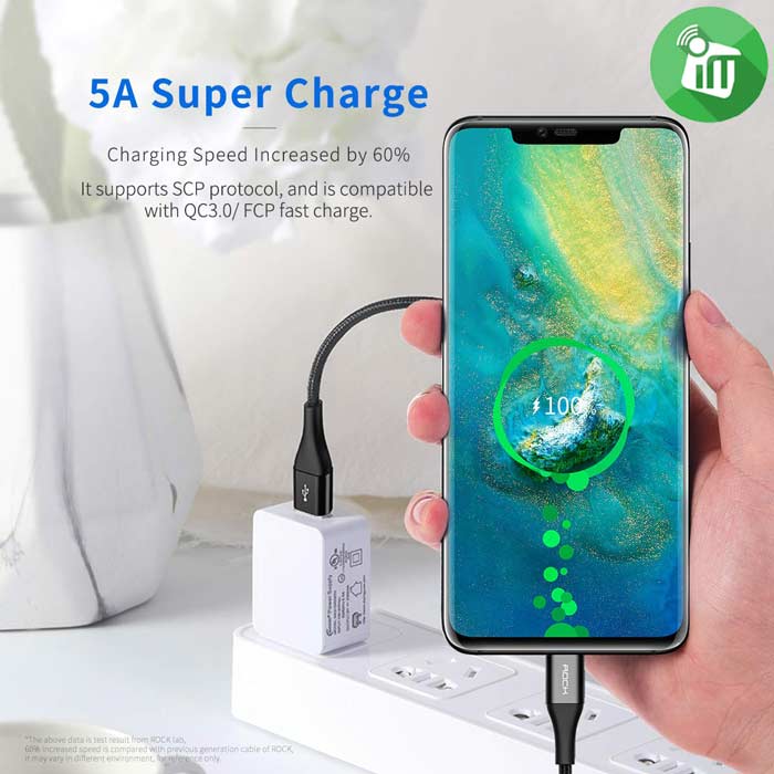 Rock C8 C TO A 5A Metal Super Charge Sync round Cable (1m)