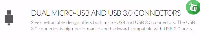 - ♦Retractable design with dual micro-USB and USB 3.0 connectors.