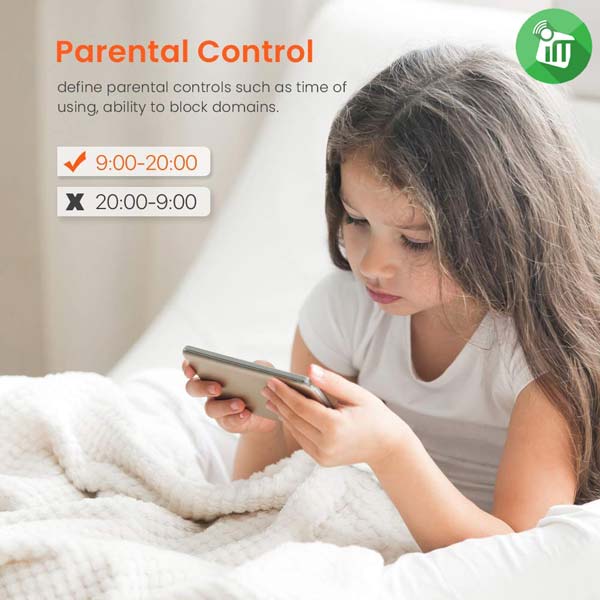 Support Client Filter Mac Filter Websites Filter function, you can define parental controls such as time of using, ability to block domains.