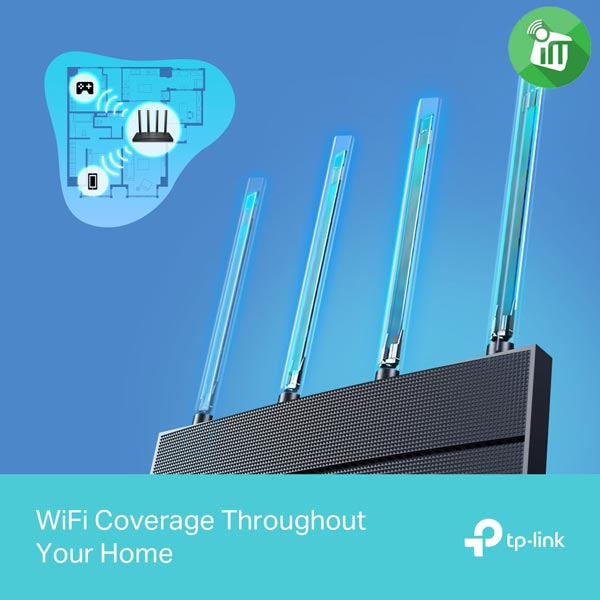 4× high-performance external antennas boost WiFi signals throughout your home. Beamforming technology detects devices and concentrates wireless signal strength towards them, especially for those in previously hard-to-reach areas.
