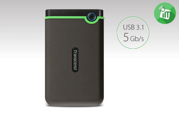 Transcend’s StoreJet 25M3 ruggedized external hard drive combines supreme shock-resistant qualities with the USB 3.1 Gen 1 interface, allowing for ultra-fast file transfers and the highest level of anti-shock protection
