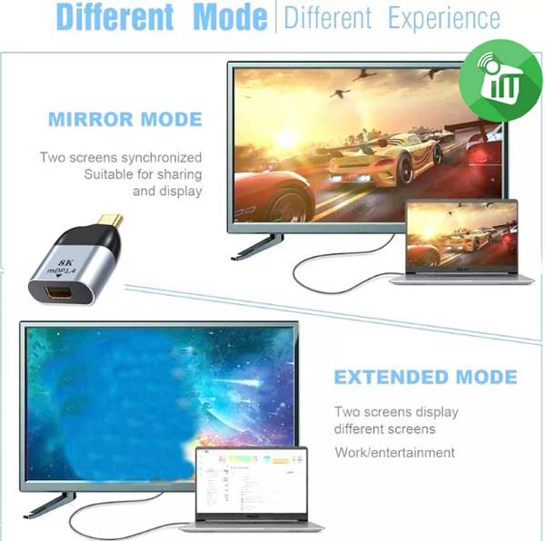 Mirroring Extends to Your Desktop The USB C to miniDP converter allows you to mirror videos and images from your computer to your TV, monitor, projector, and monitor. The portable USB C to miniDP adapter is light in weight and can be put in a bag while traveling. Tight and lightweight, you can put it in your pocket or computer bag on business trips.