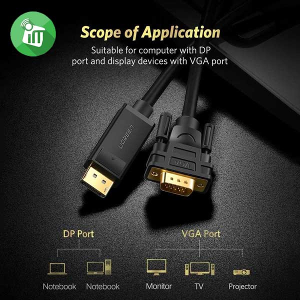 UGREEN 10247 DisplayPort Male To VGA Male Cable (1.5m)