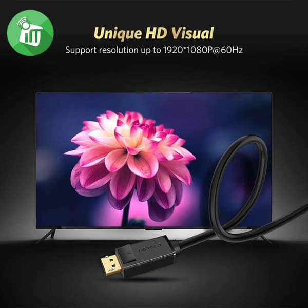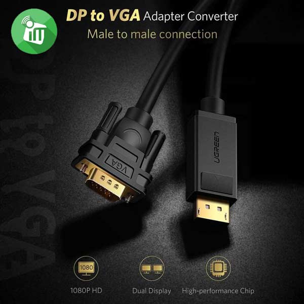 UGREEN 10247 DisplayPort This DisplayPort to VGA cable supports up to 1920 x 1200 @ 60 Hz/ 1080P (Full HD) resolution,162 MHz video DAC for analog VGA signal output, providing crystal-clear picture quality for your devices.