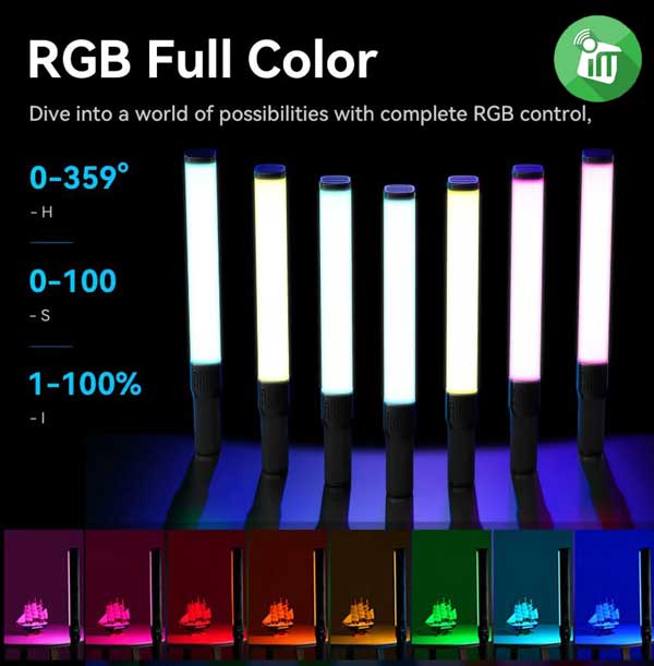Light Stick VL360 RGB features HSI mode to get full access of color you want. Hue adjustable from 0° – 359°, Saturation adjustable from 0% -100%, and Brightness dimmable from 0% – 100%.