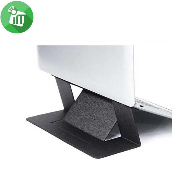 The stand is only 3mm thick and weighs only 2.3 ounces. There are two adjustable heights it can be set to and it will hold up to 18 pounds. The stand will work with laptops up to 15.6” in size and it has a strong adhesive built into the stand for easy installation