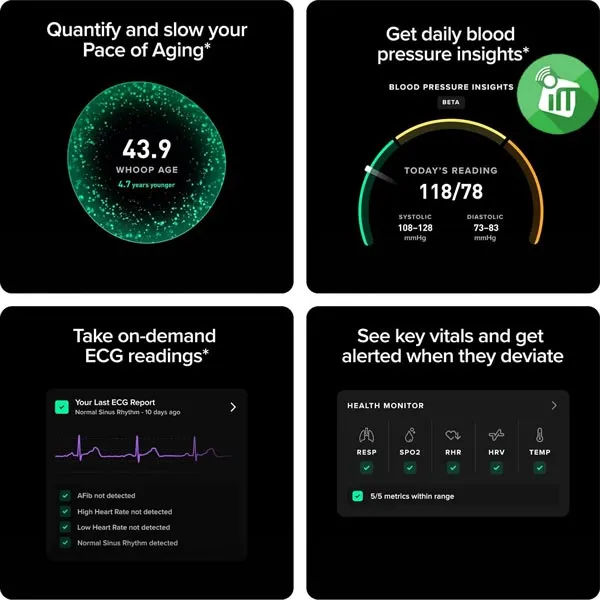 For those who want the most advanced view of their health—WHOOP Life delivers unparalleled insights. Monitor your heart with on-demand ECG readings, gain daily blood pressure insights, and build habits that support your longevity.